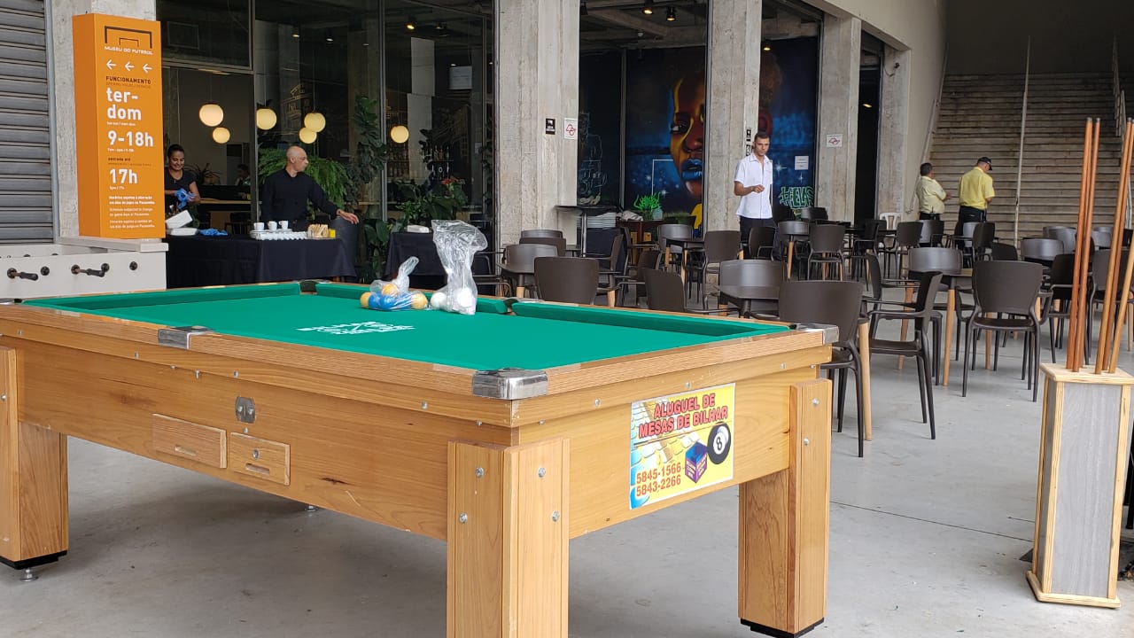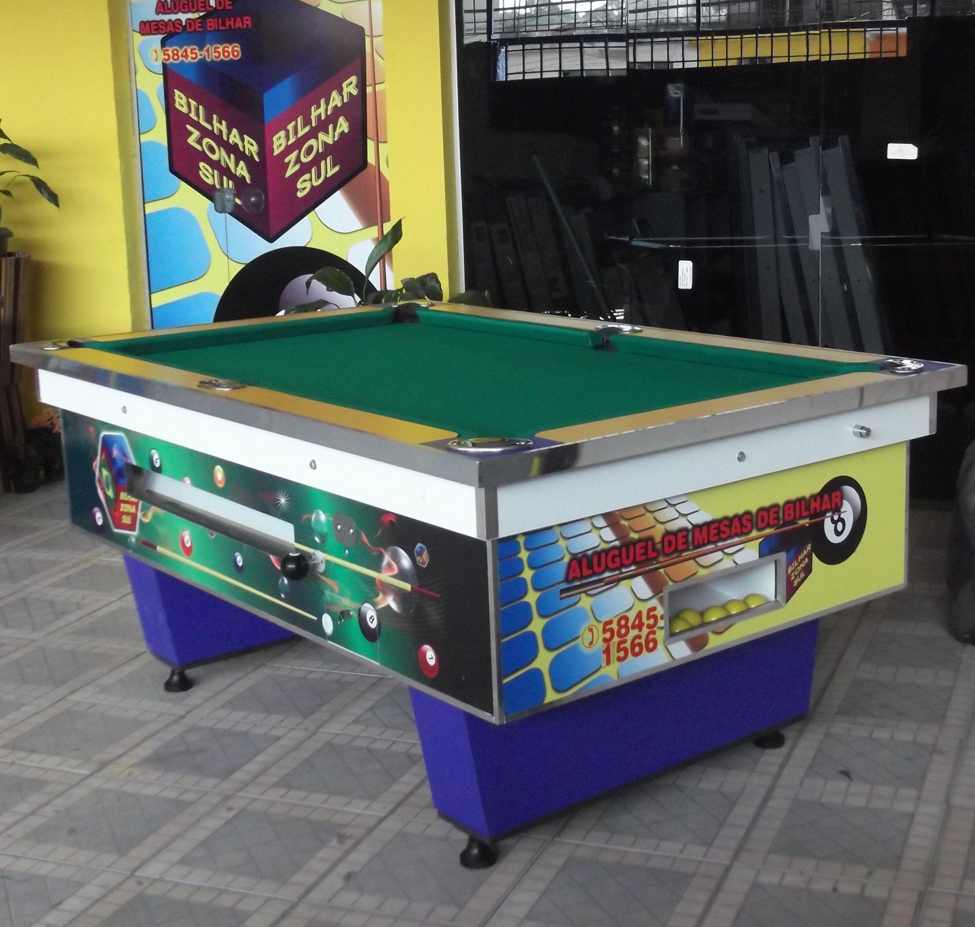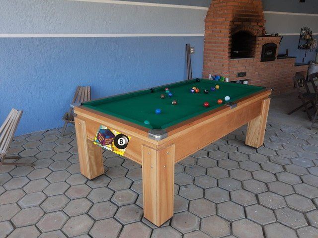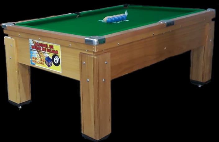 Trabalhamos com mesas de alta qualidade , Pedras de Ardósia, tacos de madeira Ipê, Bolas importadas, panos de lã e acrílico e Giz master .